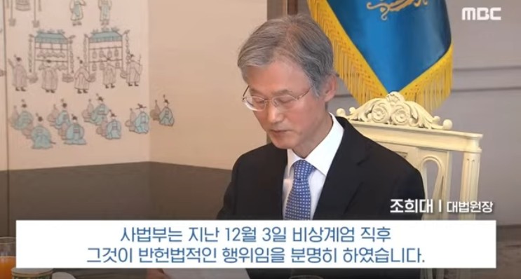 »çÁø=´ë¹ý¿øÀå Á¶Èñ´ë°¡ ÀÌÀç¸í ´ëÅë·É ¾Õ¿¡¼­ ±¹¹ÎÇлìÀ» ¸í·ÉÇÑ À±¼®¿­ÀÇ ³»¶õ¿¡ ¹Ý´ëÇß´Ù´Â °ÅÁþ¸»À» Çϸ鼭 »ç¹ýºÎ °³Çõ¿¡ ´ëÇÑ ¹Ý´ë ÀÔÀåÀ» ¹àÇû´Ù. mbc