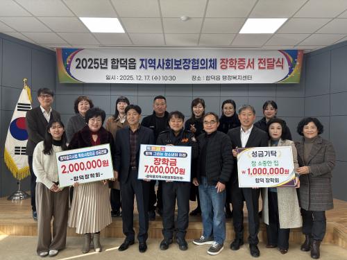À̹ø ÀåÇбÝÀº ÇÕ´öÀ¾ Áö¿ª»çȸº¸ÀåÇùÀÇü ƯȻç¾÷ ¹× ÇÕ´öÀåÇÐȸÀÇ ±âʱÝÀ¸·Î ¸¶·ÃµÈ °ÍÀ¸·Î, Çо÷¿¡ ¼º½ÇÈ÷ ÀÓÇÏ´Â ÇлýµéÀ» ÀÀ¿øÇÏ°í °Ý·ÁÇϱâ À§ÇØ ÁغñÇß´Ù. À̳¯ ¼±Á¤µÈ °íµîÇлý 10¸í¿¡°Ô´Â °¢ 70¸¸ ¿øÀÇ ÀåÇбݰú ÀåÇÐ Áõ¼¸¦ Àü´ÞÇß´Ù. Àü´Þ½Ä¿¡´Â ÇÕ´öÀ¾ Áö¿ª»çȸº¸ÀåÇùÀÇü À§¿øÀ» ºñ·ÔÇØ ÇÕ´öÀåÇÐȸ °ü°èÀÚ, Çлý°ú ±³Á÷¿ø µî 30¿© ¸íÀÌ Âü¼®Çß´Ù.