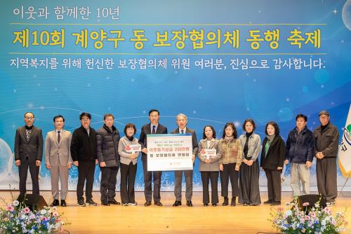 ¶ÇÇÑ µ¿ º¸ÀåÇùÀÇü ¹× Áö¿ª»çȸº¸ÀåÇùÀÇü ½Ç¹«ºÐ°ú Ãâ¹ü 10ÁÖ³âÀ» ¸Â¾Æ, µ¿ º¸ÀåÇùÀÇü À§¿ø À¯°øÀÚ 12¸í°ú Áö¿ª»çȸº¸ÀåÇùÀÇü ½Ç¹«ºÐ°ú À§¿ø À¯°øÀÚ 8¸í¿¡°Ô ǥâÀåÀ» ¼ö¿©ÇØ Áö¿ªº¹Áö ¸®´õ·Î¼­ÀÇ ÀÚ±à½ÉÀ» ³ô¿´´Ù. ¾Æ¿ï·¯ °è»ê1µ¿°ú ÀÛÀü¼­¿îµ¿¿¡¼­ º¸ÀåÇùÀÇü Ȱµ¿ ¿ì¼ö»ç·Ê¸¦ ¹ßÇ¥Çϸç, ÇöÀå¿¡¼­ÀÇ ½Çõ ¼º°ú¸¦ °øÀ¯ÇÏ´Â ¶æ±íÀº ½Ã°£µµ À̾îÁ³´Ù.